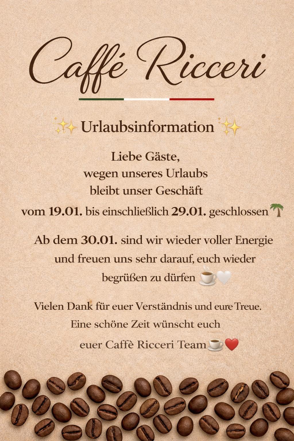 Treten Sie ein in die Welt von Caffe Ricceri und lassen Sie sich von unserer Leidenschaft für erstklassigen Kaffee und feinste Speisen verzaubern. In unserem gehobenen, zugleich gemütlichen Ambiente servieren wir Ihnen hochwertige Kaffeespezialitäten und liebevoll zubereitete Gerichte, die das Beste aus Italien mit regionalen Einflüssen verbinden. Genießen Sie den Charme italienischer Kaffeekultur, spüren Sie die Wärme unseres Teams und gönnen Sie sich eine kleine Auszeit vom Alltag – wir freuen uns darauf, Sie bei uns begrüßen zu dürfen!